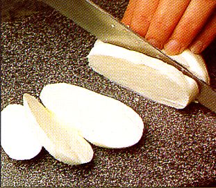 | Den Mozzarella abtropfen lassen und in l cm dicke Scheiben schneiden. | ![]() |